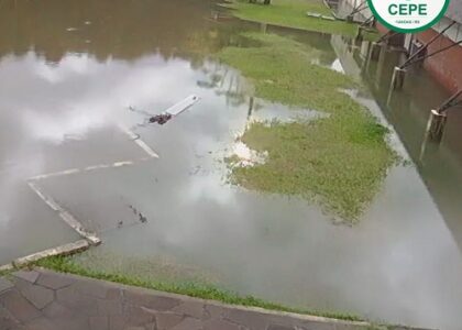 Devido às fortes chuvas, o Arroio Sapucaia transbordou, atingindo a Sede Esportiva do clube. O