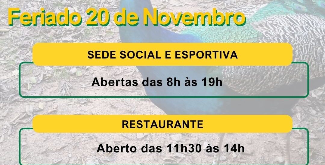 Nessa quinta-feira, feriado de 20 de Novembro, o clube estará aberto das 8h às 19h.