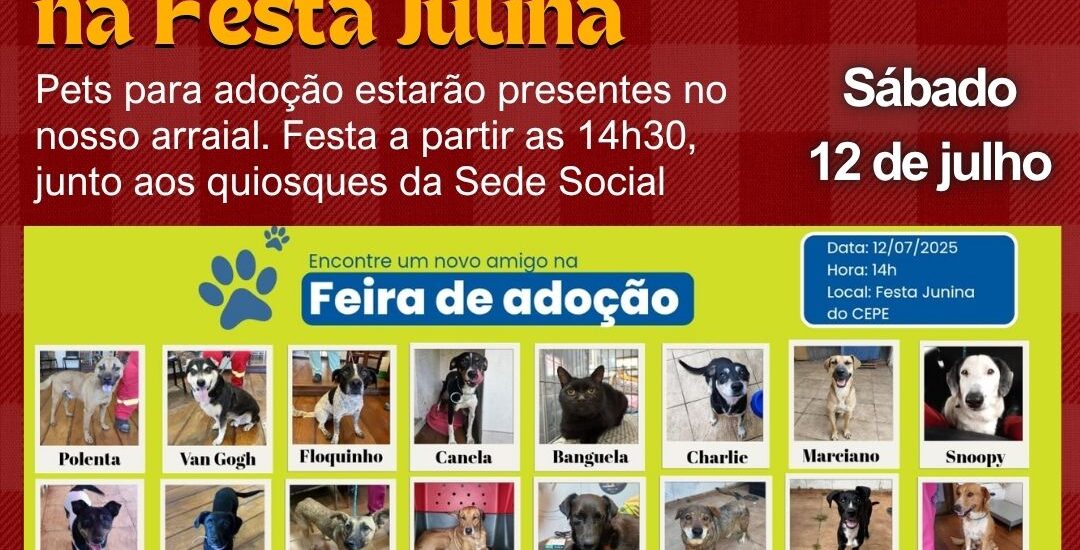 📍 A festa julina ocorre neste sábado (12/7) a partir das a partir das 14h30, junto aos quiosques da Sede Social (Avenida Getúlio Vargas, 11.001).