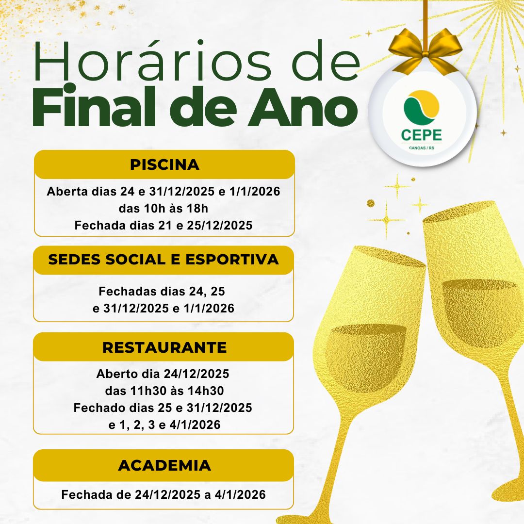 Informamos, que excepcionalmente nesse domingo, 21 de dezembro de 2025, ambas as Sedes estarão fechadas